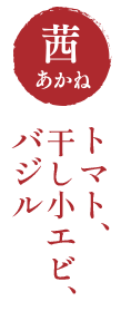 油揚げはトマトパウダーで煮染めた茜色。トマトの旨味とバジルが香る、 意外な組み合わせながら秀逸な味わい。